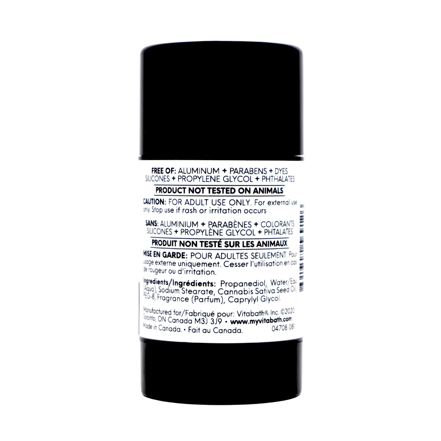Ingredients/Ingrédients: Propanediol, Water (Aqua/Eau), PEG-8, Stearic Acid, Sodium Hydroxide, Fragrance (Parfum), Glyceryl Caprylate, Caprylyl Glycol, 1,2-Hexanediol, Ehtylxylglycerin, Cannabis Sativa Seed Oil.