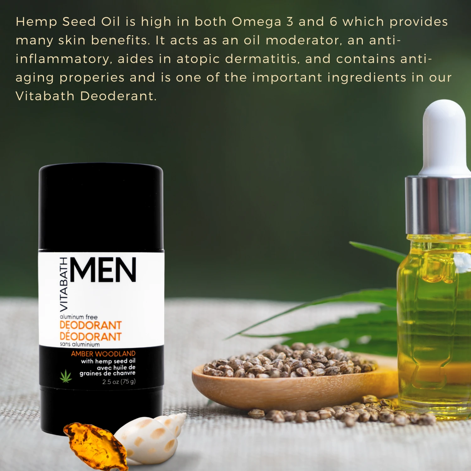 Infused with the clean, musky scent of cool water notes mixed with smooth amber and white woods, Amber Woodland Hemp Natura Deodorant at Vitabath® will provide you with the fresh, natural feeling that your underarms deserve. It’s formulated with hemp seed oil to help combat odor-causing bacteria, as well as promote pH balance and help prevent clogged pores. It’s also made without aluminum, parabens and phthalates, meaning it’s a safe alternative for an irritant-free, effective deodorant option.