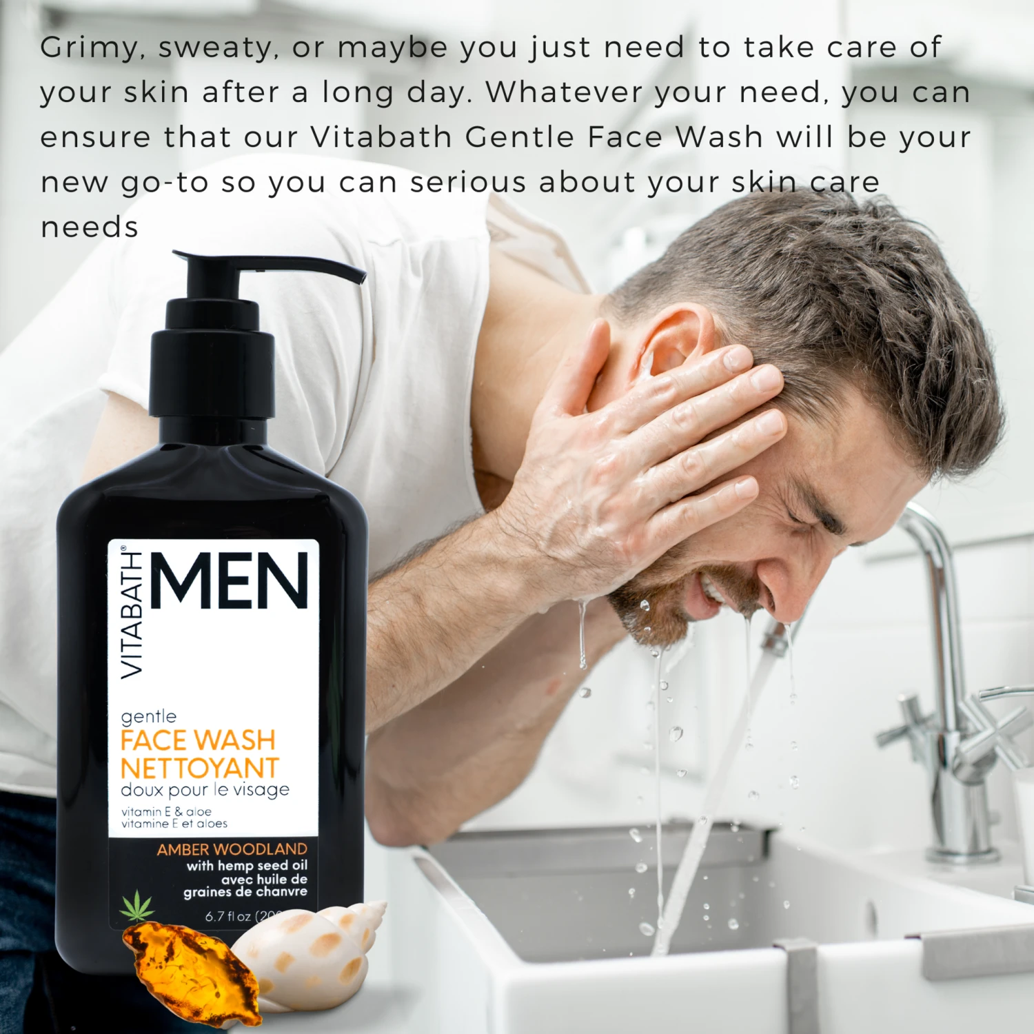 Infused with the clean, unisex scent of cool water notes mixed with smooth amber and white woods, Vitabath® Amber Woodland Hemp Face Wash is a must-have facial cleanser for men. It’s packed with soothing ingredients to clean, hydrate and nourish the skin, including hemp seed oil, an added vitamin blend and aloe. In addition to gently removing dirt, built-up oil and other impurities from your pores, it leaves your skin feeling soft, smooth and refreshed.