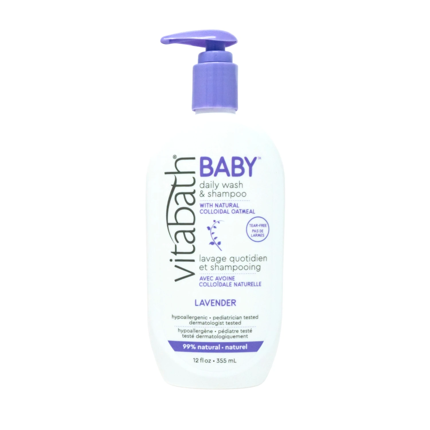 Vitabath® BABY Daily Wash & Shampoo with Natural Colloidal Oatmeal is a gentle, tear free formula with Colloidal Oatmeal that can be used daily on baby’s skin and hair without drying. Our product is 99% Natural and lightly scented with Lavender Essential Oil for a calming bath time experience.
