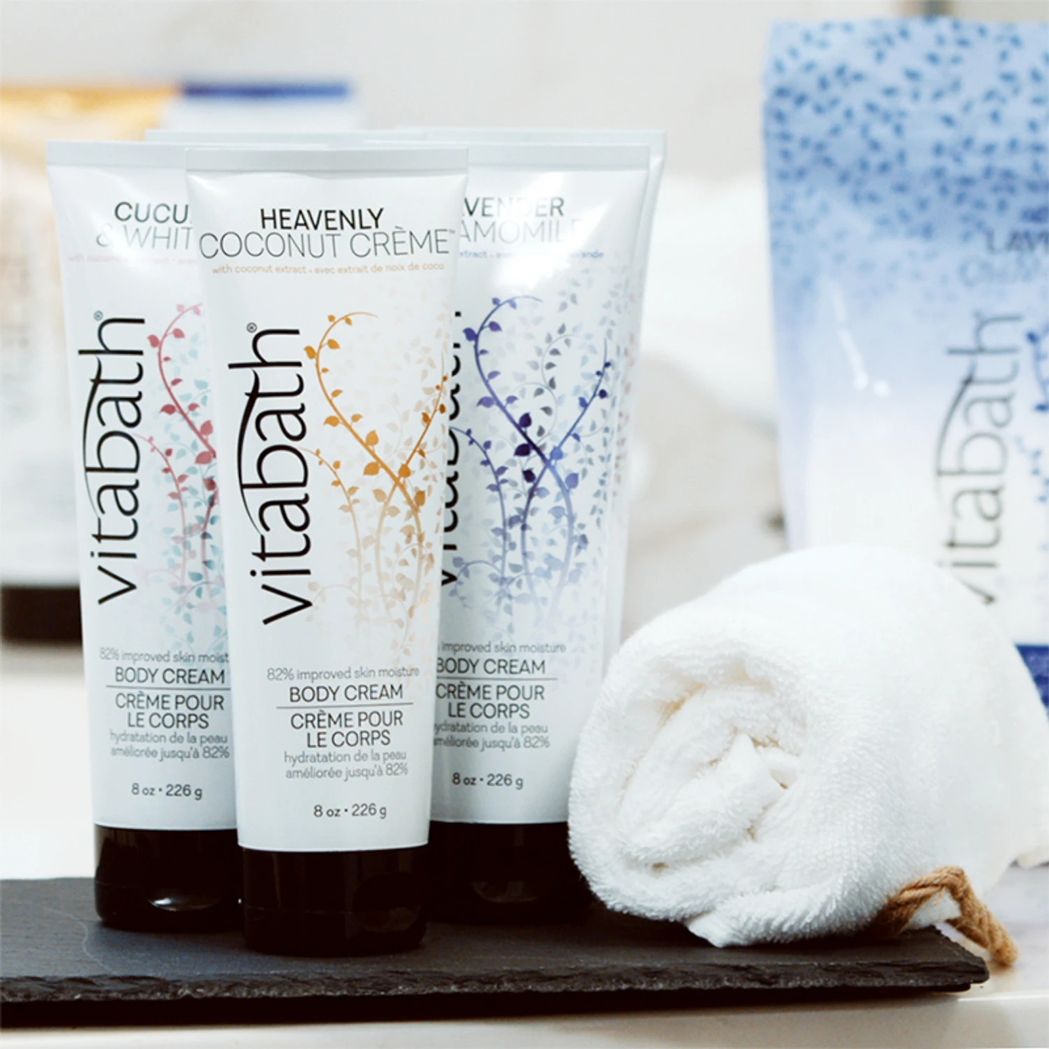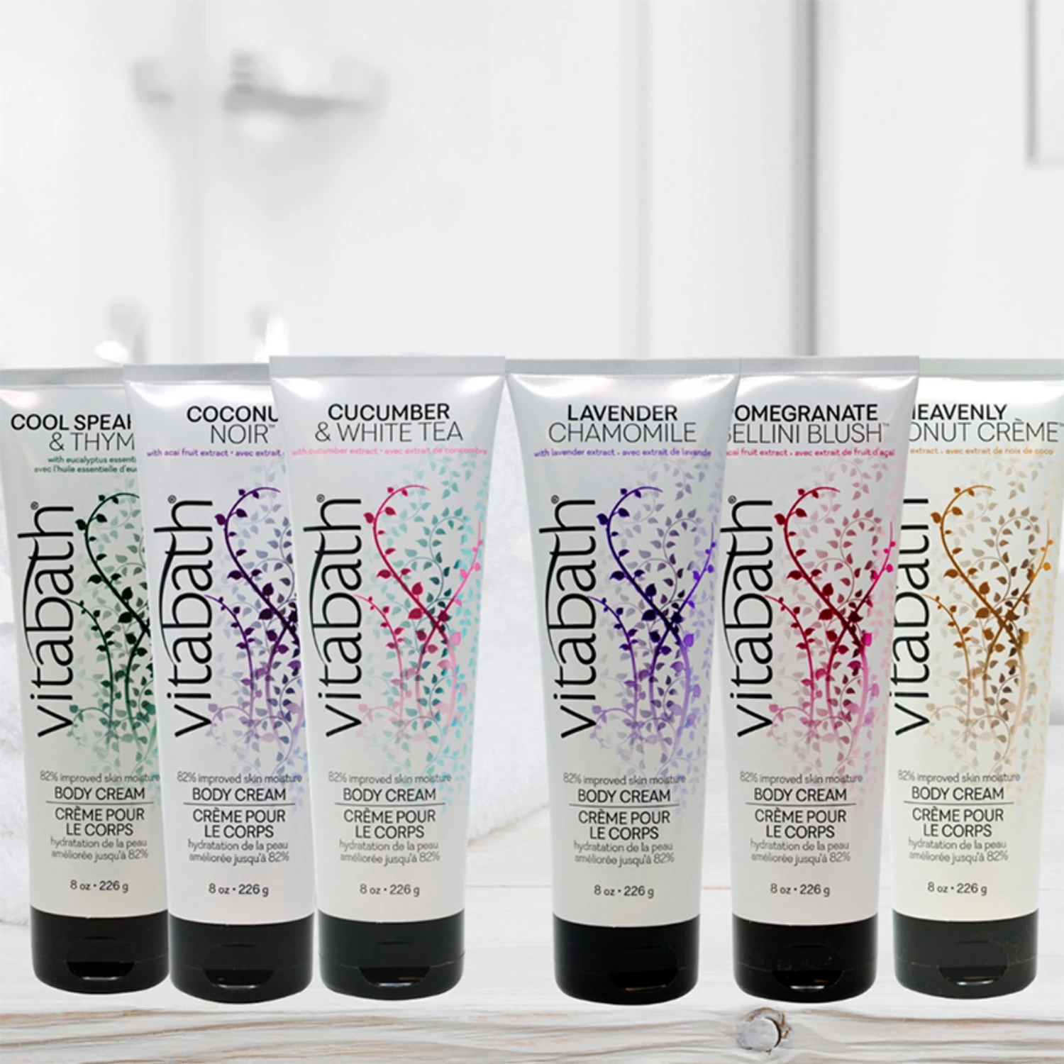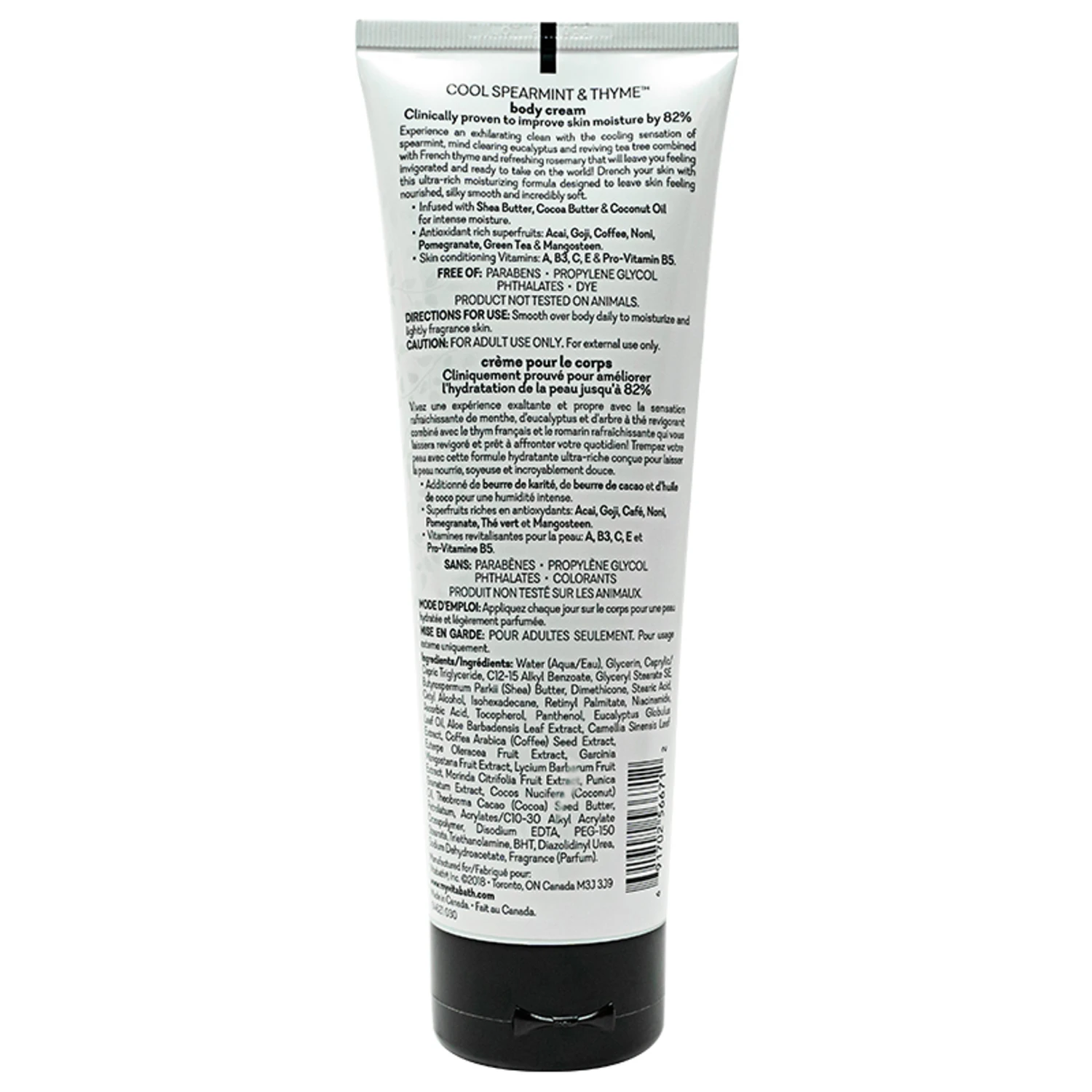 Vitabath’s ultra-rich body cream formulas are expertly concocted and clinically proven to improve your skin’s moisture levels by 82%. Envelope your precious skin in a highly protective layer of vitamins, nutrients and antioxidant-rich superfruits that will soothe your skin at a cellular level and keep it moisturized and healthy. The ultra-rich moisturizing formula in Vitabath’s Cool Spearmint & Thyme™ Body Cream is designed to leave skin feeling nourished, silky smooth and touchably soft and supple. Enjoy a natural shea butter, cocoa butter and coconut oil blend that is infused with the antioxidant benefits of acai, coffee, green tea, mangosteen, goji and noni as well as vitamins A, B3, C, E and pro-vitamin B5 for intensely penetrating skin conditioning.