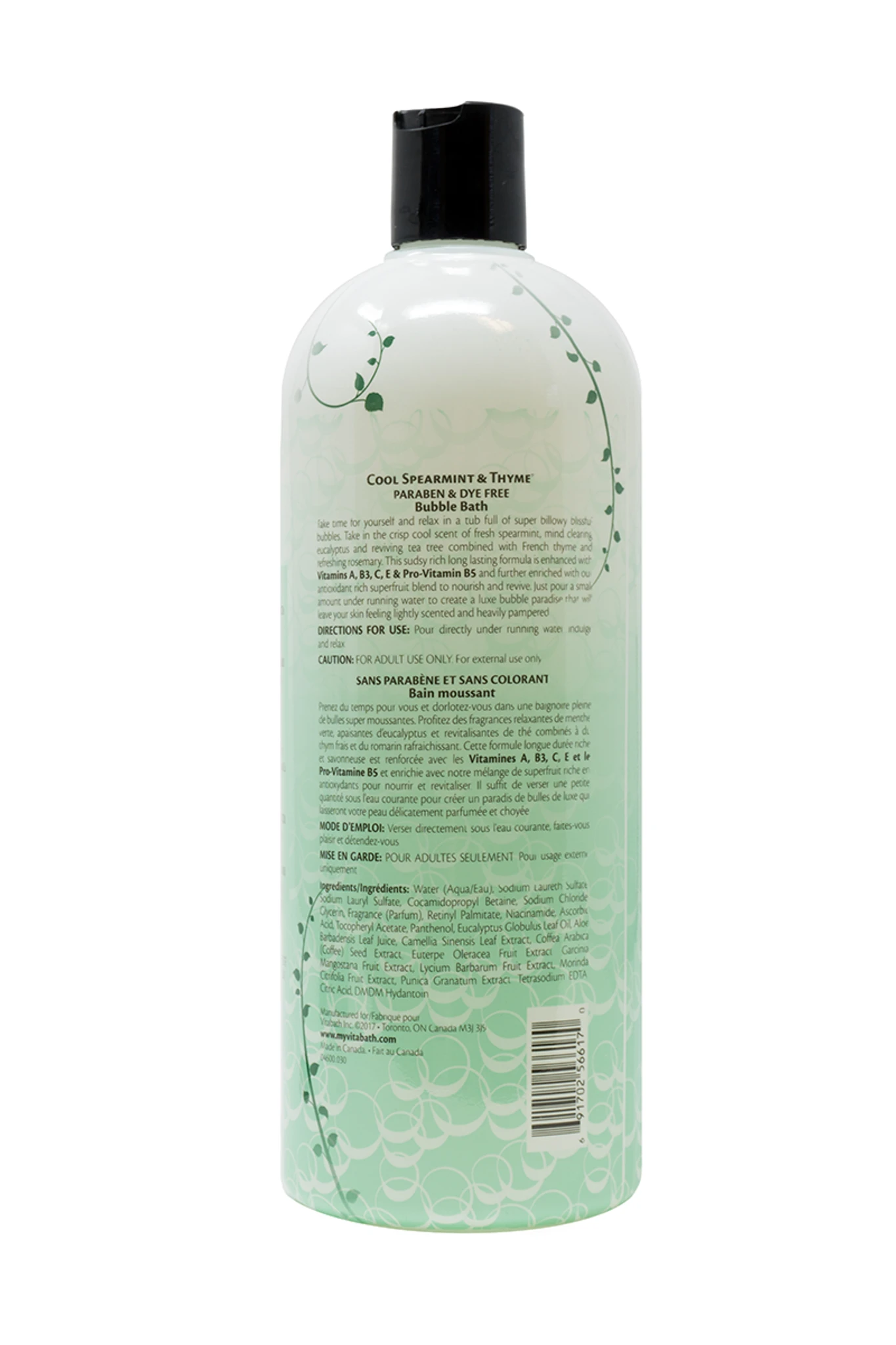 Experience an invigorating soak when you use Cool Spearmint & Thyme™ Bubble Bath from Vitabath®. Featuring the crisp, cool aroma of spearmint along with mind-clearing eucalyptus, reviving tea tree oil and refreshing French thyme and rosemary, this bath product provides an energizing scent with herbal notes. Sink into a tub full of blissful bubbles and feel the cares of the day melt away as you breathe in this fresh, clean fragrance.