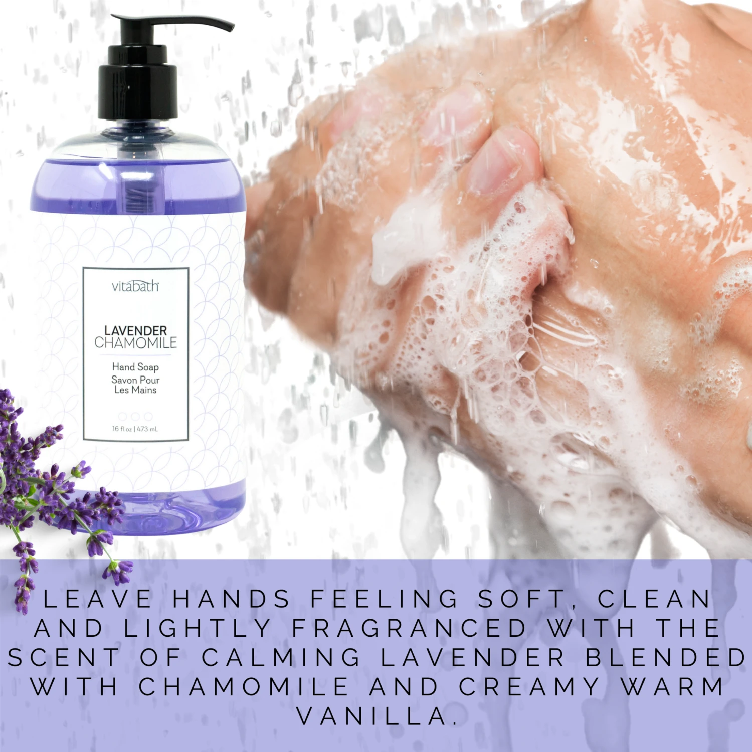Leave hands soft and lightly fragranced with Vitabath Hand Soap which features a perfectly layered combination of calming lavender extract, light, airy chamomile and creamy, warm vanilla. Our Lavender Chamomile fragrance is a peaceful scent that calms your mind and spirit.