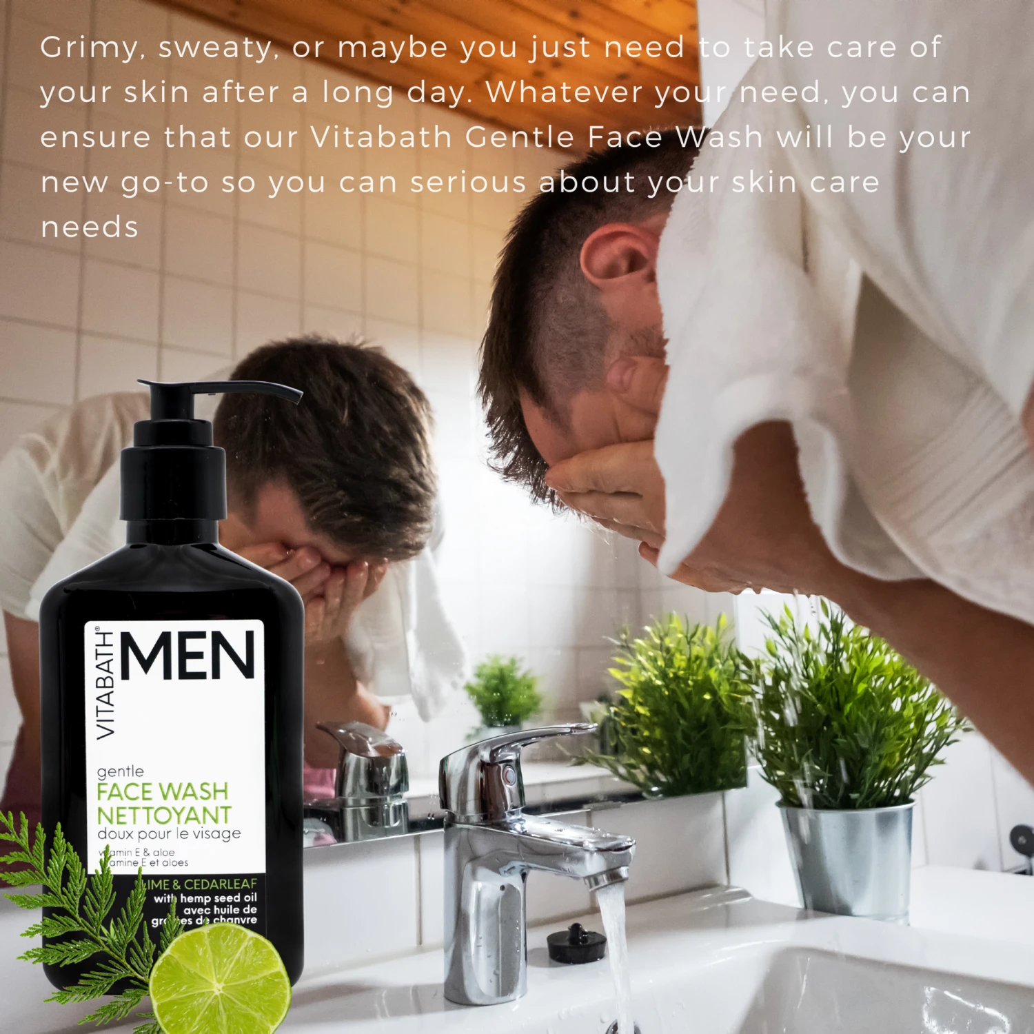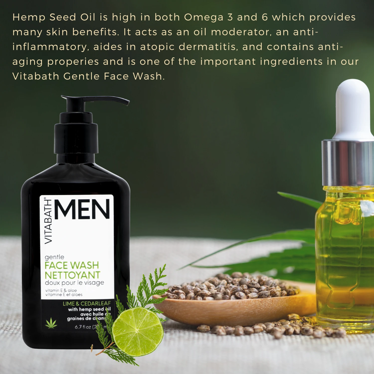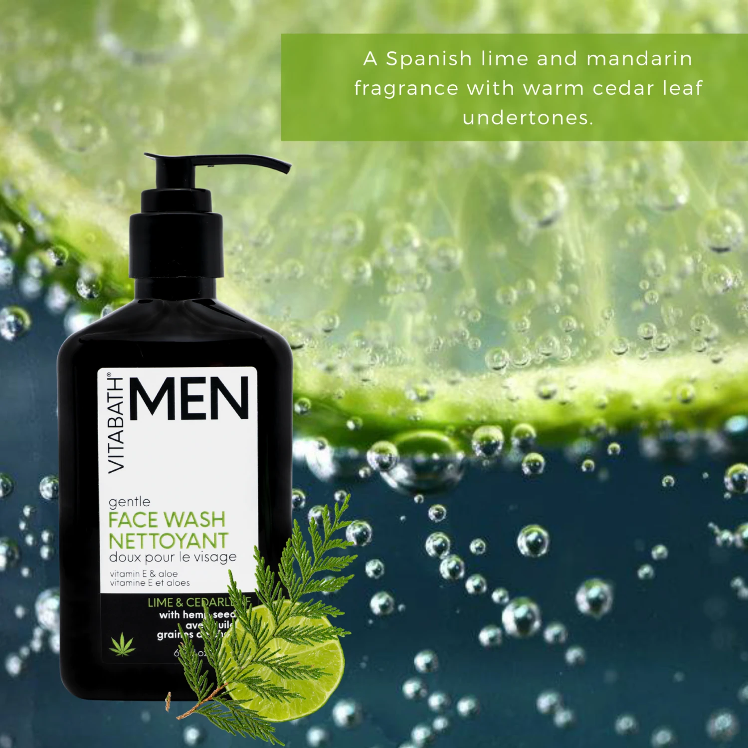 Featuring the invigorating unisex scent of Spanish lime, juicy mandarin and earthy cedar leaf, Vitabath® Lime & Cedarleaf Hemp Face Wash is a must-have facial cleanser for men. It’s packed with soothing ingredients to clean, hydrate and nourish the skin, including hemp seed oil, an added vitamin blend and aloe. In addition to gently removing dirt, built-up oil and other impurities from your pores, it leaves your skin feeling soft, smooth and refreshed.