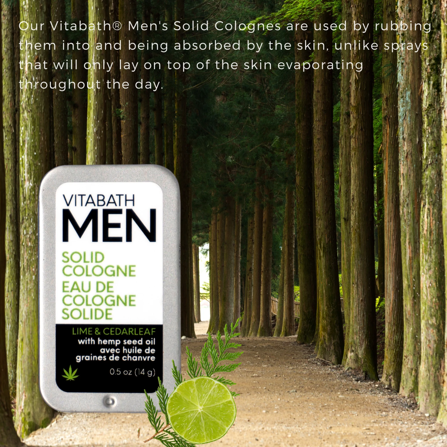 Offering the invigorating scent of Spanish lime, juicy mandarin and earthy cedar leaf, Vitabath® Lime & Cedarleaf Hemp Seed Oil Cologne is unlike most traditional men’s fragrances. It’s formulated as a solid rather than a spray, which means that instead of sitting on top of the skin and evaporating throughout the day, it’s rubbed into the dermis. It works in conjunction with your body temperature over the course of the day, creating a truly one-of-a-kind fragrance based on your body chemistry.