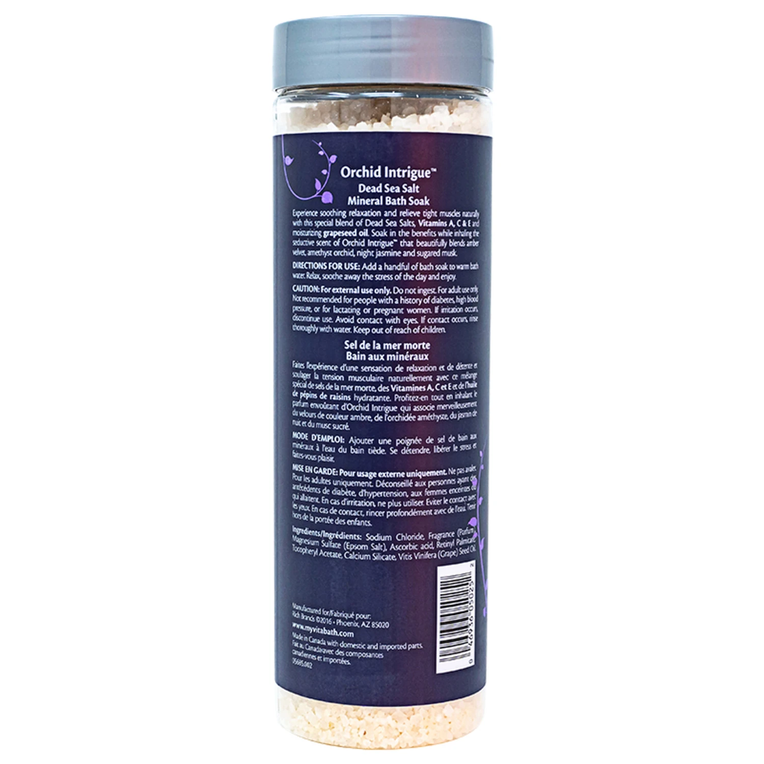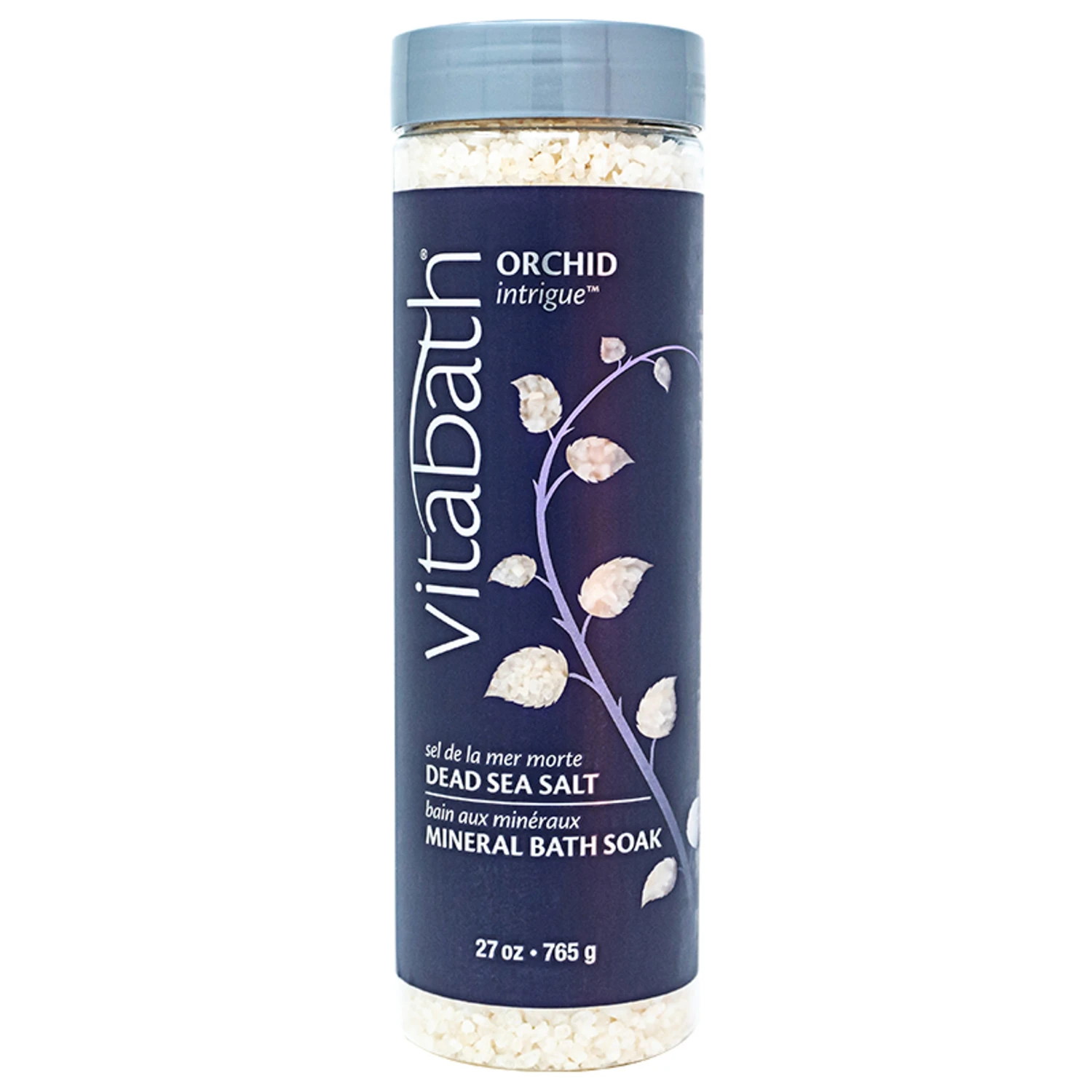 Alluring and sensual, our Vitabath Orchid Intrigue™ Mineral Bath Soak’s fragrance is accented with intense purple blooms. Soft swirls of amber velvet are layered into our Orchid Intrigue™ fragrance – along with luxurious amethyst orchid, night-blooming sambac jasmine and complex sugared musk. Deeply intoxicating, complicated and multi-layered, our Vitabath Orchid Intrigue™ fragrance has a unique depth that will envelope you in memorable and comforting softly scented tones.