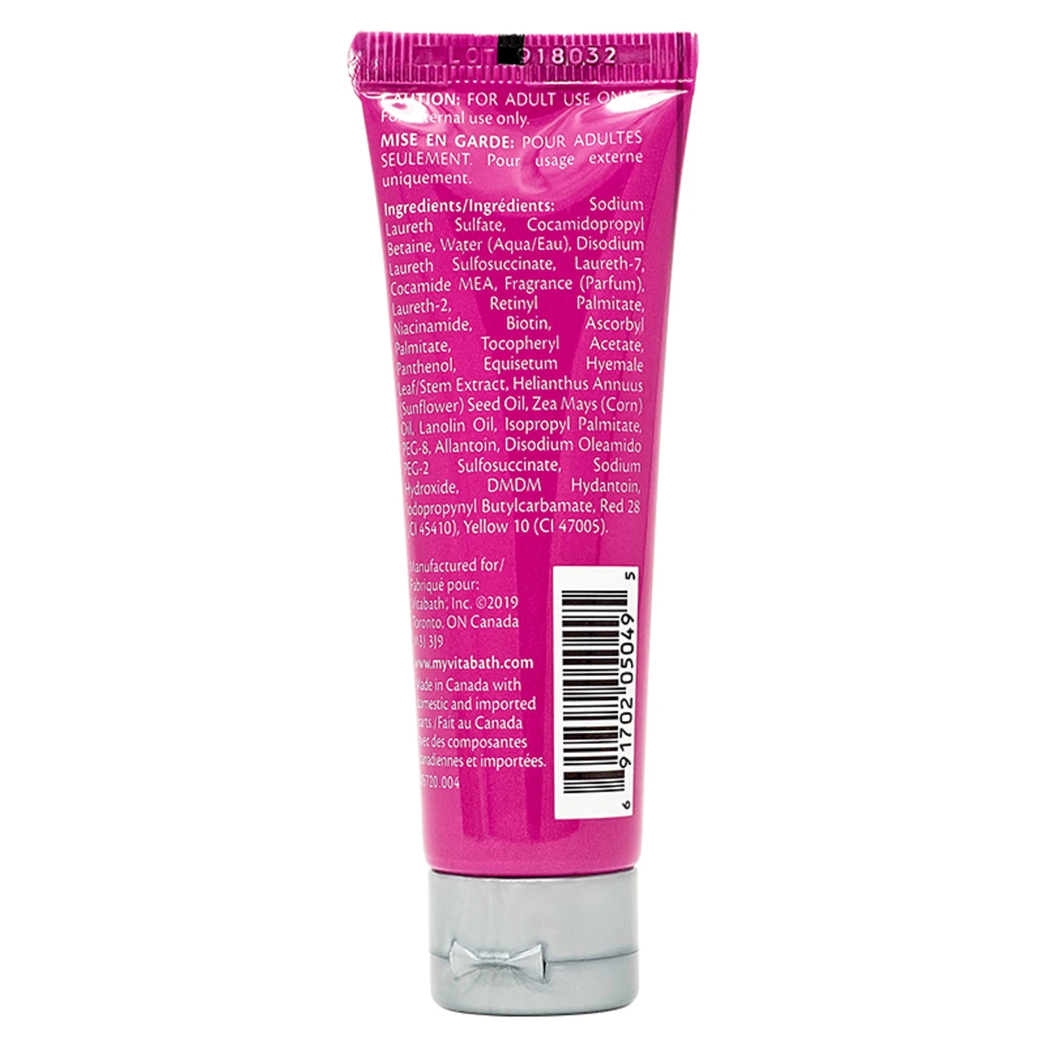 INGREDIENTS: Sodium Laureth Sulfate, Cocamidopropyl Betaine, Water (Aqua/Eau), Disodium Laureth Sulfosuccinate, Laureth-7, Cocamide MEA, Fragrance (Parfum), Laureth-2, Retinyl Palmitate, Niacinamide, Biotin, Ascorbyl Palmitate, Tocopheryl Acetate, Panthenol, Equisetum Hyemale Leaf/Stem Extract, Helianthus Annuus (Sunflower) Seed Oil, Zea Mays (Corn) Oil, Lanolin Oil, Isopropyl Palmitate, PEG-8, Allantoin, Disodium Oleamido PEG-2 Sulfosuccinate, Sodium Hydroxide, DMDM Hydantoin, Iodopropynyl Butylcarbamate, Red 28 (CI 45410), Yellow 10 (CI 47005).