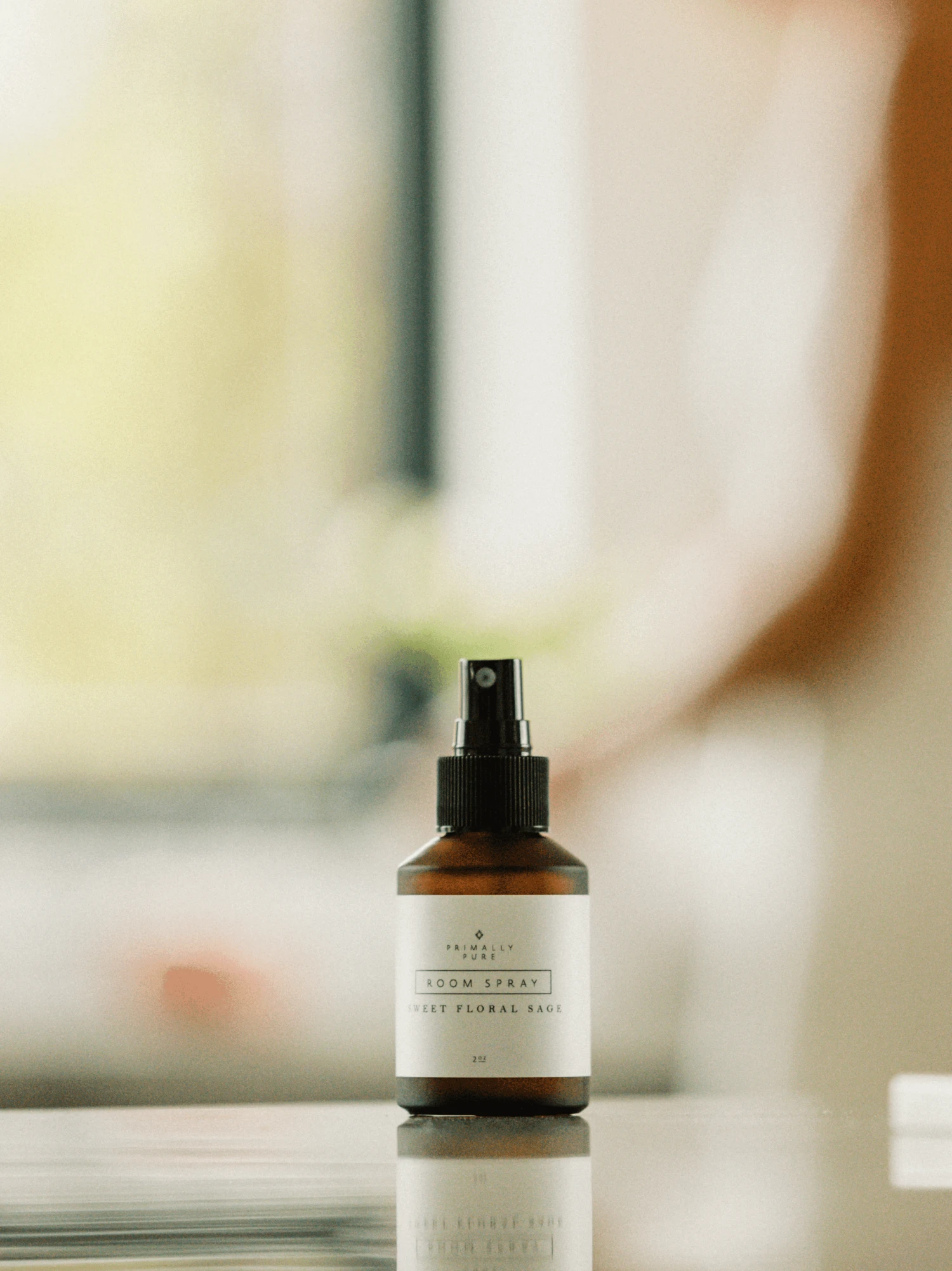 The Sweet Floral Sage Room Spray is packaged in a recyclable 2 oz.